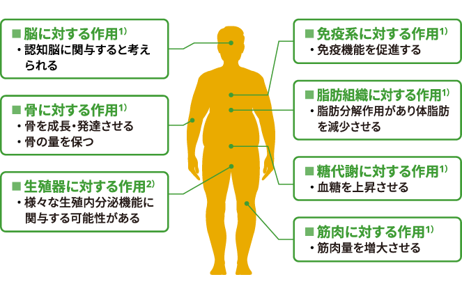 3-1. 究極のアンチエイジング「成長ホルモン」の分泌 筋繊維に適切な負荷をかけ、修復させる過程で、脳下垂体から「成長ホルモン」が大量に分泌されます。 大人になると分泌量が激減するこのホルモンは、別名「若返りホルモン」と呼ばれています。