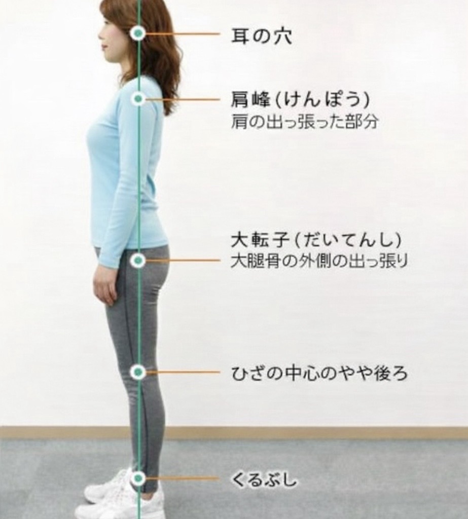 正しい立ち姿勢かどうかを判断する非常に分かりやすい指標です。